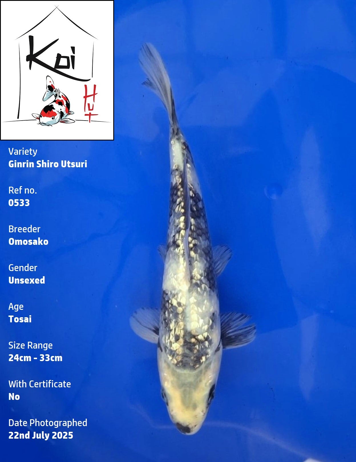 ![0533 - Ginrin Shiro Utsuri [Omosako]](http://shop.koihut.co.uk/cdn/shop/files/0533KHWeb.jpg?v=1753281904&width=1445)
