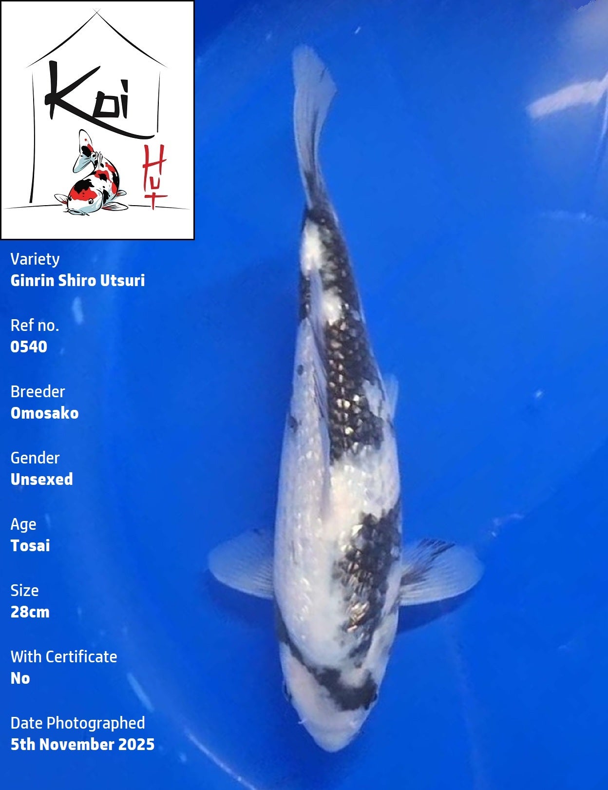 ![0540 - Ginrin Shiro Utsuri [Omosako]](http://shop.koihut.co.uk/cdn/shop/files/0540KHWeb.jpg?v=1762350137&width=1445)